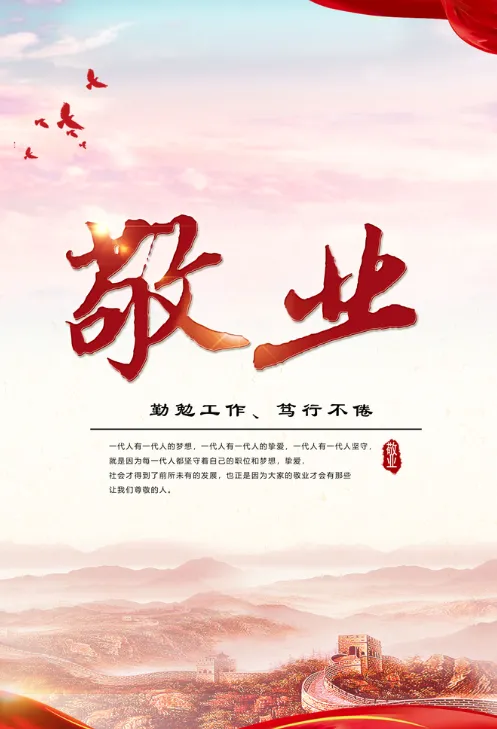 敬业,是社会主义核心价值观的重要基石,是公民在职业活动中忠于职守、服务社会、创造价值的崇高品质。它不仅是个人安身立命之本,更是社会高效运转、文明赓续前行的核心支撑。在全社会范围内,敬业精神构筑起行业发展的脊梁,维系着社会的和谐与进步。